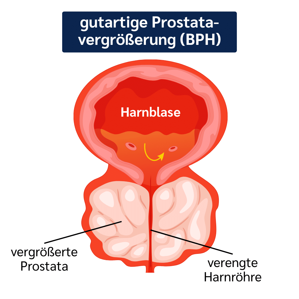 Diese Symptome entstehen durch eine Verengung der Harnröhre infolge des vergrößerten Prostatagewebes.